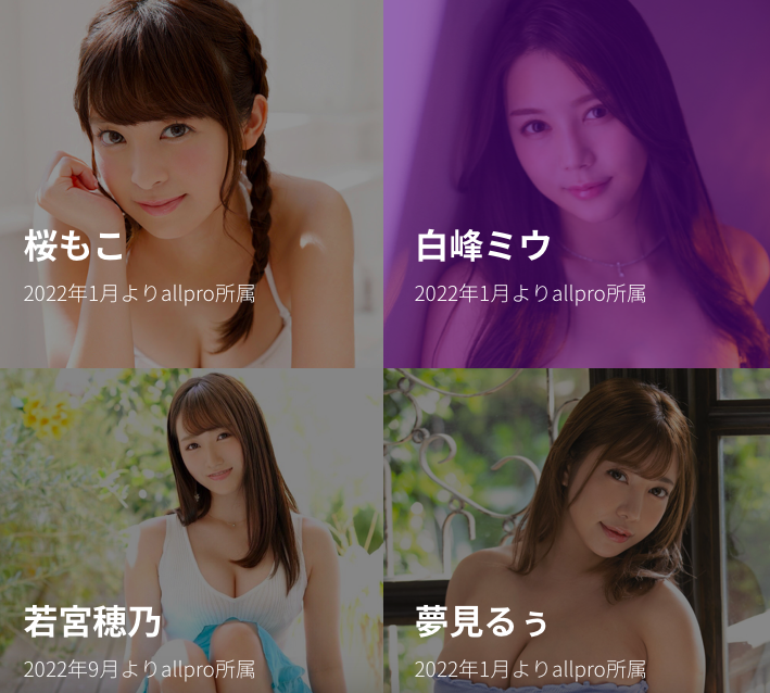 为什么?现在包括桜もこ(樱萌子)、安位カヲル(安位薰)、梦见るぅ(梦见露)以及白峰ミウ(白峰美羽)都被放在经纪公司AllPro的官网上,我曾经告诉大家,那是因为AllPro现在管理女优的头和三上悠亜的原经纪人「青木亮」有师徒关系,所以双方用业务提携的方式合作,将三上以外的女优交给AllPro「照顾」:但问题来了,AllPro自己有没有女优呢?有的,他们有小野六花、有藤森里穂、樱茉日及流川夕四位片商的专属女优要照顾,还有像若宫穂乃、松本菜奈実以及佐知子这样或移籍或自身发掘的企划女优要推,安位等人就很可怜,虽然还是可以找原事务所的人敲他们行程,但一来你不知道原事务所的人有没有在管他们死活,二来AllPro有自己的人要照顾,她们不尴尬我都觉得尴尬了⋯