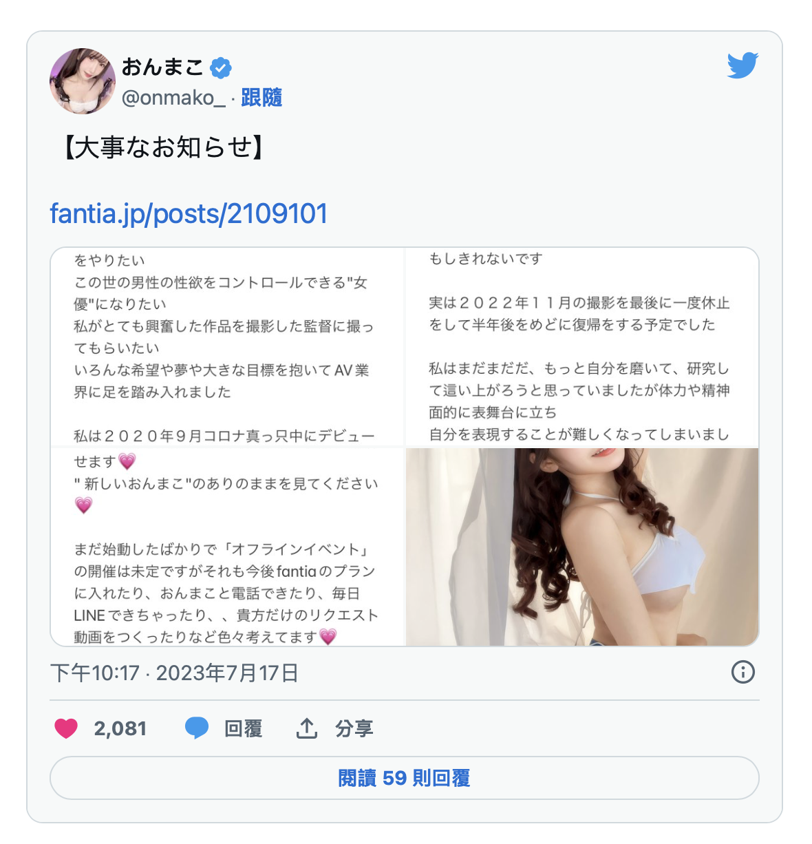 唉,虽然还抱着一丝希望,不过看到这纸声明就知道,志恩まこ(志恩真子)留不住了⋯