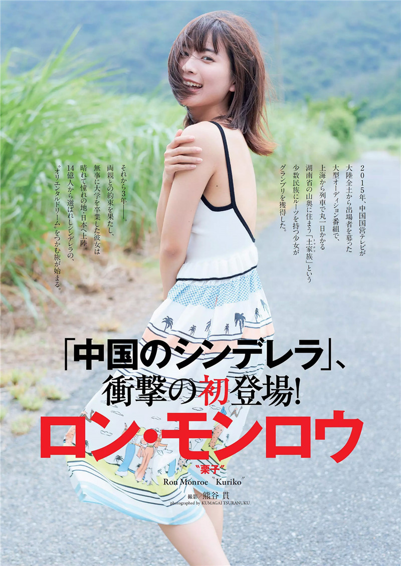 龙梦柔:中国版新垣结衣,龙梦柔对日本记者说,她从小看日本动画、漫画长大,并且非常喜欢日本的乡村风景。在这期杂志写真中,除了在感受日本自然风情的奄美大岛拍摄的8页写真照之外,还有栗子介绍的“东京都内辛辣中华料理比较”4页,以及一篇关于她的访谈,令粉丝们对龙梦柔这颗中国栗子有了一个全面的了解。